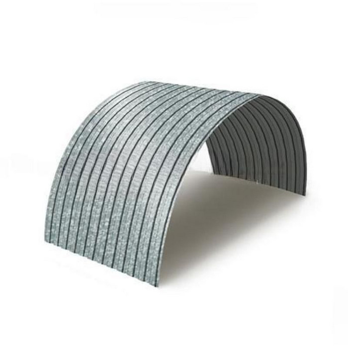 Профнастил для арочных перекрытий используется прежде всего при строительстве различных арочных конструкций, у которых существует определенный изгиб по радиусу. Он активно применяется при возведении ангаров, складов, зернохранилищ, различных округлых и полукруглых вариантов крыш и кровли. С его помощью можно построить как большое здание сельскохозяйственного назначения, так и красивый эстетичный навес для автомобиля площадью несколько квадратных метров. Основной отличительной особенностью данного вида профлиста является его изогнутая по радиусу форма, сформированная на специально предназначенной для этого профилегибочной линии. Радиус изгиба может быть самый разнообразный, и зависит прежде всего, от требований заказчика и характеристик будущего здания. Плюсами такого материала являются как его изготовление в заводских условиях, так и геометрическая точность, в результате чего стыки листов практически не видны и конструкция выглядит действительно монолитной.