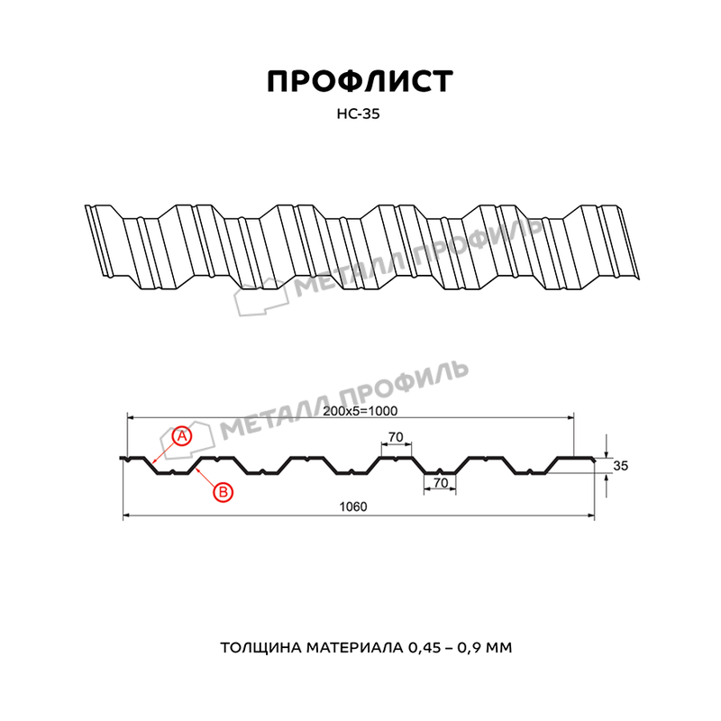Многоцелевой и выгодный материал с одинаковым с обеих сторон профилем. Маркировка НС значит, что профлист этот – и «несущий», и «стеновой». Он пользуется спросом как для гражданского строительства, так и при возведении крупных объектов. Из профлиста с глубиной гофры в 35 мм получаются строения совершенно разного плана: быстровозводимые сооружения ( навесы, павильоны ), обустройство кровли, каркасные здания ( цеха, торговые центры, склады ), ограждения частных и городских территорий. Отличную несущую способность НС-35 обеспечивают специальные канавки, проходящие с обеих сторон профлиста. Рабочая ширина этого профиля достигает 1000 мм при номинальной ширине 1060 мм, таким образом, при установке данного профиля в боковой замок скроется 60 мм. Толщина стальной заготовки имеет диапазон от 0,5 до 0,9 мм – это обуславливает не только механическую прочность стройматериала, но и его тяжесть. Полимерно-защитный слой из ассортимента Компани Металл Профиль добавит материалу улучшенную стойкость к коррозии и солнечному излучению.