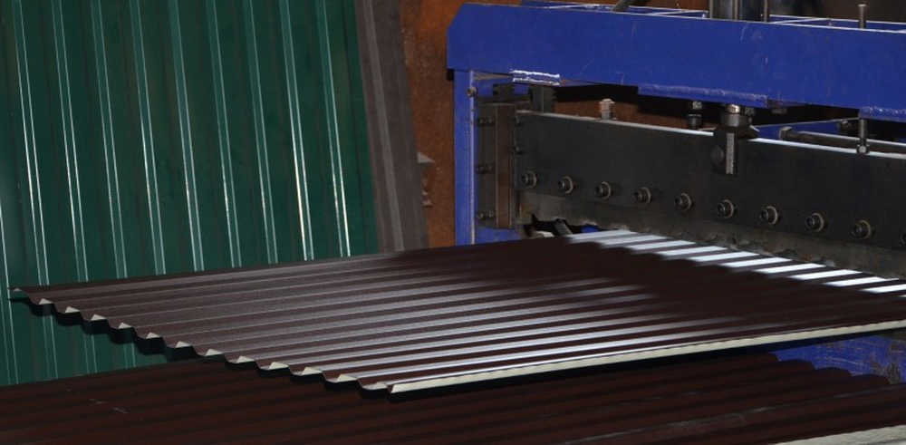 Профнастил – это крупные листы разной толщины, выпускаемые производителем из гнутого железа без нагрева на станках – холодным способом. На поверхности каждого листа имеются рёбра жёсткости – волны. Получаются они после проката на оборудовании, их высота и форма зависят от назначения и типа стройматериала.